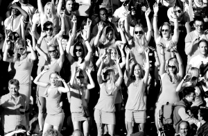 83465名现场观众,荷丹之战创造了开赛以来仅次于揭幕战的上座率。一片橙色海洋中,谁是最受欢迎的人?不是场地中的荷兰球员,不是场边的克鲁伊夫、齐达内,而是一群青春靓丽的荷兰女孩。昨天的看台上,20多个荷兰女孩,统一穿着橙色短裙,个个性感艳丽,抢尽风头。
