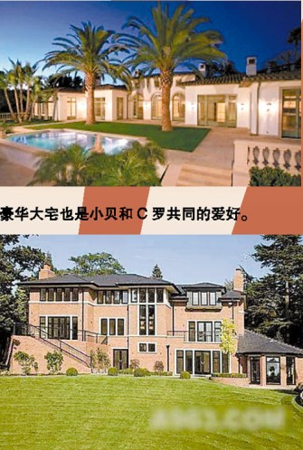 迄今为止,小贝已挥大手笔买下几座豪宅。想当初,1998年,他跟辣妹住在一间寒酸的小公寓里面。不过,1999年,小贝就大手笔买进位于赫特福特郡的豪宅,被授予“万人迷的皇宫”称号,这也是他居住最长时间的官邸。2002年,同在赫特福特郡,这对夫妇搬入霍林斯德豪宅,由仓库改造而成,里面有5间房,一个游泳池,还有健身房,约居住一年。2003年,小贝签约皇马后,以170万英镑易手。