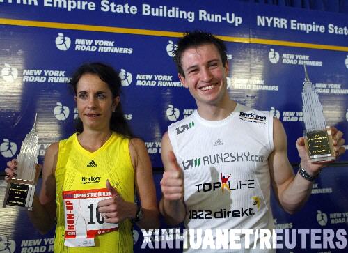 每年一度的美国纽约帝国大厦爬楼梯比赛号称“爬楼梯大赛的奥林匹克运动会”。第32届帝国大厦爬楼梯比赛3日重燃战火。