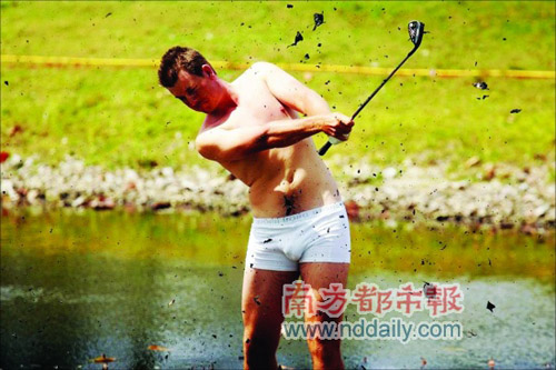 在上周的CA锦标赛中,斯滕森为了救出在泥潭里的球,不惜脱掉衣服鞋袜,只穿了一条白色内裤去救球。有人因此嘲笑斯滕森就像CK内裤模特,不过斯滕森并不在意。本周二,泰格·伍兹在和斯滕森一起参加特维斯特克杯的时候,饶有兴致地向斯滕森赠送了两条相同款式的白色黑边内裤。伍兹还在内裤上亲笔签下了自己的名字,斯滕森很高兴地接受了这两条绝无仅有的内裤。