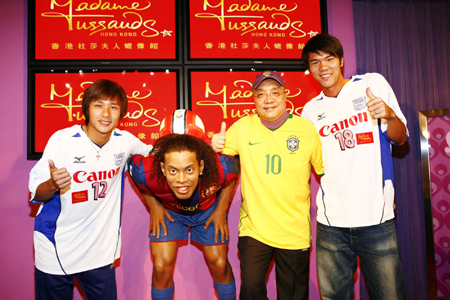 巴西世界级足球明星罗纳尔迪尼奥近日加入香港杜莎夫人蜡像馆的“体坛猛将”展区。“中央社”图 陈幸嫚 摄