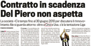 皮耶罗与尤文图斯的合同到2010年6月30日到期,续约尤文图斯固然好,但如果待遇方面不能得到满足,那么也不排除皮耶罗寻找其他球队养老的可能性。据《米兰体育报》所说,包括中国、美国和西班牙的球队都尝试接触皮耶罗,特别需要指出的是来自中超球队的邀请。小新