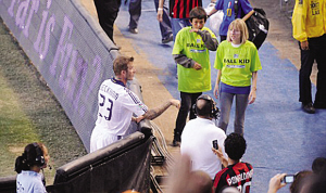 不过更令球迷关注的是,在这场小贝重回银河队的首个主场比赛中,主场的银河队球迷对小贝不忠于球队、想要离队重返米兰或转回英超的表态非常不满,现场的银河队球迷更是不停地狂嘘小贝。而在人称“洛杉矶暴走队”的银河队死忠球迷区,更是悬挂了各种嘲讽、奚落甚至辱骂小贝的大幅标语。有的标语写到:滚回家吧,骗子!有的则写到:你做的事很邪恶,而你自己本身就代表邪恶!
