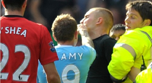 中新网9月21日电 在昨天曼彻斯特德比大战中,除了惊心动魄的进球和火爆的场面外,赛场外也上演了一场全武行,有照片捕捉到曼城悍将贝拉米拳击球迷的一幕。