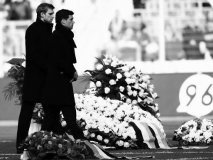 昨天,自杀身亡的德国国门罗伯特·恩克的悼念仪式,在汉诺威AWD竞技场举行,在90分钟的仪式过程中,恩克的家人、朋友、以及数万球迷和他们心爱的罗伯特告别,而恩克也最后一次回到他最熟悉的主场,在这里他曾经接受过无数次的欢呼,而这一次他将带着众人的哀悼到天堂和心爱的女儿相会。