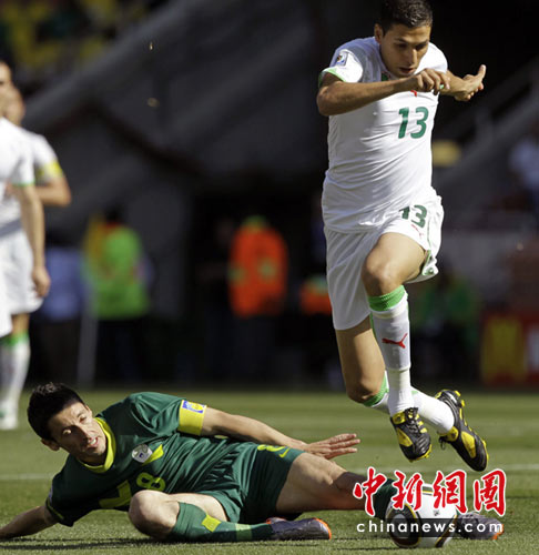 中新网6月13日电 北京时间今晚19:30,南非世界杯C小组迎来第二场较量,由阿尔及利亚对阵斯洛文尼亚。最终阿尔及利亚被罚下1人,0-1不敌斯洛文尼亚。