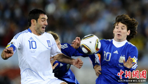 中新网6月23日电 在今天凌晨进行的一场世界杯小组赛第三轮的比赛中,阿根廷队在波罗瓜尼的彼得-莫卡巴球场迎来了希腊队的挑战。最终凭借德米凯利斯和帕勒莫的进球,他们以2-0击败希腊,列小组第一出线。他们在1/8决赛中的对手将是中北美劲旅墨西哥队。