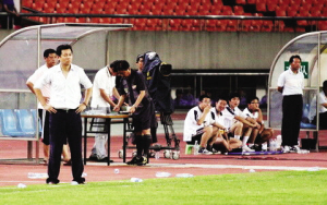 但业余的毕竟是业余的,申花在朱骏的指挥下,并没能改变上半场进攻不利的困难,眼看渴望的3分希望愈发渺茫,情急之下,朱骏走到球场边,几乎是贴着边线指挥起了比赛。