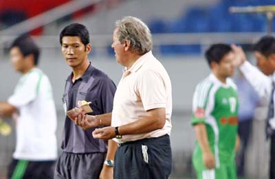 8月4日下午,刚刚获得自己的中超首胜的阿里·汉正和球员们在训练场上开着玩笑,突然,本来晴好的天气突然变脸,狂风、暴雨在短短几分钟内劈头盖脸地蹂躏着球场上的每一个人,本来笑哈哈的阿里·汉有点恼怒,他不得不和助手们一起躲进了场边的雨棚。结束训练后,雨还没有停,湿透了的阿里·汉心情已经好转,他还不知道自己已经被足协处罚的消息。几分钟后,他再一次“透心凉”,记者把处罚结果第一时间传达给他时,阿里·汉的脸立即阴沉了下来,并拒绝回答任何问题。他告诉翻译,“我什么都不会说的。”