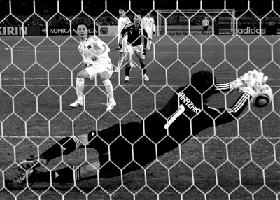 昨晚,东京温度降至零下3℃,依然有不少热情的中国球迷从日本其他城市赶到东京为国足助威。本场比赛,高洪波将重心放在防守上,国足继续排出4231阵型,郜林担任单箭头。第31分钟,国足前场左侧连续快节奏传递,荣昊将球挑传至禁区线附近,郜林转身攻门可惜被中泽佑二挡出,第42分钟,日本队在左右两侧连续形成渗透配合,玉田圭司近距离包抄低射打偏。上半场,双方势均力敌。