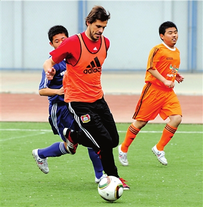 由于球员伤病或去国家队备战世界杯,勒沃库森队中阿德勒、克罗斯和基斯林等无法来华,不过前德国国脚M·弗里德里希以及辛基维奇、卡斯特罗和黑尔默斯等明星球员均随队前来,全队最大牌的还是德国前国家队主教练沃勒尔。昨天下午,弗雷德里希等球员来到回民中学,在球场上对学校小球员们进行了技术指导。