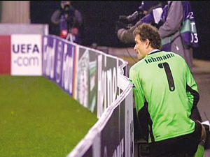 然而在这场比赛中,却发生了令人瞠目结舌的一幕。原来就在这场生死战的比赛进行过程中,斯图加特40岁的主力门将、前德国头号国门莱曼,突然离开其镇守的球门,接着翻过球门后的广告牌,然后迅速选择一个在装满摄像与摄影设备的箱子边蹲下身,这个可疑且神秘的动作持续了数十秒,莱曼才起身来到球门边。巧合的是,莱曼刚回到球门前,对方就发动了一次进攻。负责转播这场比赛的天空体育电视台的摄像机捕捉到了这一细节,但由于莱曼的动作被箱子挡住,因此无法确切拍摄到莱曼到底在干什么。不过赛后,德国著名的图片报根据拍摄的照片和录像回放来分析,莱曼十有八九是突然内急,于是直接在广告牌下借助箱子的遮挡方便了一下。