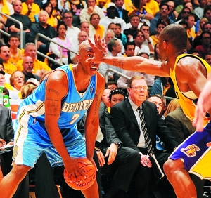 火箭虽然已经出局,但巴蒂尔防守科比的遮脸绝技让球迷津津乐道。对阵湖人,巴蒂尔的主要任务就是防守科比,在对抗中,不管科比是多么难以阻挡,巴蒂尔始终遵循着“一只手盖在脸上”的防守法则。7场西部半决赛打下来,科比一定已经记清了巴蒂尔掌心的每条纹路。伸手挡脸看似简单,其实是个技术活,难就难在如何不碰到对手的脸。也许是受到巴蒂尔的启发,科比昨天在防守掘金后卫比卢普斯时也用了遮脸这招,但科比的原地“发功”技术含量和巴蒂尔比起来还是逊色不少。巴蒂尔的做法是在快要发生身体接触那一刻在空中转体,右腿侧伸,身体跟科比的身体略略交错,从而保持手掌与对方面庞的距离,随着对手投球完毕,巴蒂尔的手掌便收缩回来。这种动作难度很高,但效果不错,不仅能挡住对手的投球路线,也能分散对方的注意力。