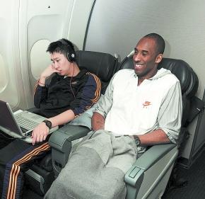 昨日,湖人队在洛杉矶乘坐包机飞赴奥兰多踏上客场征程,继上月底湖人飞赴丹佛备战与金块的西部决赛之后,孙悦再一次成为科比的“专职陪坐”。