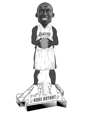 “如果你在为不知道送一个湖人球迷什么礼物而烦恼,别想了,一个身高1米98的‘科比’怎么样?”这样的广告语对任何一个湖人球迷都太有诱惑力了,而且这不是虚假广告,湖人官网的网上商店正在发售——史上最大的摇头娃娃纪念品,和真实的科比一样高的摇头娃娃。