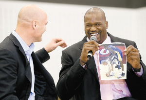 “大鲨鱼”奥尼尔绝对算得上是一位娱乐性人物,他到哪儿都把欢乐带到哪儿。这不,他在克里夫兰的首次见面会,成了奥尼尔搞笑娱乐大全。当然,乐完笑完之后,他不忘加一句:“我会为‘皇帝’带来一枚总冠军戒指。”