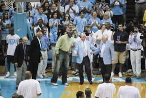 这里是北卡罗来纳大学篮球队成立100周年的庆祝比赛现场,“在美国不可能有第二个地方能举行今晚这样的盛典。”NBA老鹰队球星马文·威廉姆斯说。