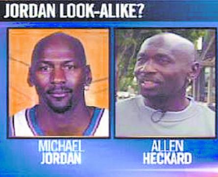 虽然身高只有6英尺(约1.83米),但海卡德的五官确实和乔丹有几分神似,特别是他和飞人一样铮亮的光头,和左耳佩戴着的耳环都让人一时间难以辨别真伪。“我不是故意要长得像乔丹,我是没有选择的余地。”长得像名人并不是一件好事,至少海卡德这么认为,“因为长得像乔丹,总是被人指指点点,这让我很不爽。”他说,自己在过去15年内一直被人误为乔丹,几乎每天都要超过15次以上被误认为是乔丹,这对他的生活造成了极大的困扰,他对此感到相当厌倦。