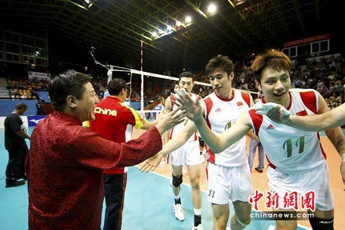 中新网留尼汪6月21日电(杨乐)2010年6月18日、19日,中国男排在留尼汪与法国男排在法国海外省留尼汪进行了两场男排联赛小组赛的比赛。第一场比赛中国队以0:3(20-25、18-25和25-27)不敌法国队。仅仅相隔一天,再战法国队的次回合较量中,中国队则表现得大放异彩。第一局法国队发挥稳健,并以25比16先声夺人。在先失一局的不利局面下,中国队最终连扳三局以3:1逆转战胜欧洲劲旅法国队。这是中国男排今年世界男排联赛客场作战的首场胜利。