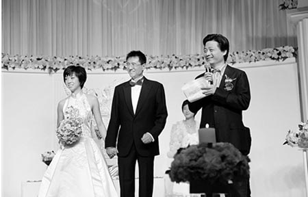 约11点,结婚典礼开始,张怡宁与徐威始终未在宴会厅门口出现,他们由酒店内部的通道直接进入了会场。据悉,本次婚礼由中央电视台名嘴崔永元担任司仪。