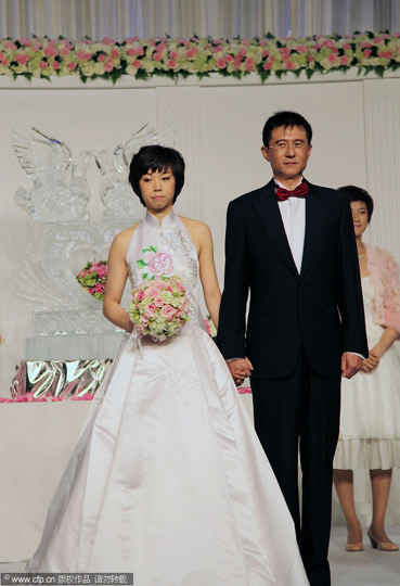 奥运会冠军张怡宁和商人徐威的婚礼选择昨天中午在北京王府井东方新天地君悦酒店举行。两人的保密工作做得很好,连电梯上的指示牌,也没有新郎新娘的名字。尽管这样,还是有媒体记者找到酒店,准备冒充嘉宾混进去。无奈,几十名保安把住了宴会厅的各个入口,只认请帖不认人,把记者都拦在了门外。虽然对记者们极尽低调,张怡宁对体坛同行们可不低调。昨天到场的嘉宾可谓成了中国乒坛的大聚会,蔡振华、徐寅生、陆元盛、邓亚萍、马琳、王楠和郭斌夫妇等人均到场祝贺。张怡宁在乒乓球国家队的队员们也纷纷赶来,马琳、郭跃、郭焱……另外,邓亚萍一家三口,体操王子李宁,体操奥运冠军刘璇等“重量级”嘉宾陆续前来祝贺。值得一提的是,本次婚礼由中央电视台名嘴崔永元担任司仪。婚礼上,能说的小崔把酷酷的张怡宁也逗笑了几次。
