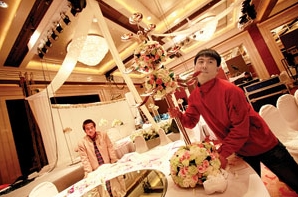 昨天,酒店为张怡宁的婚礼加派了几十名保安,将通往宴会厅的所有入口层层把关,没有请柬谢绝入内。此外,徐威、张怡宁夫妇还请了专门的摄影、摄像及独立的婚庆公司。