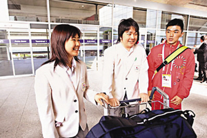 日乒队昨日全军抵港,不过球队分成2组步出机场,其中福原爱为避记者镜头,于抵港后1小时才与男队现身。全程未发一言的福原爱素颜上阵,更要求队友为她遮挡记者镜头。另一小将石川佳纯则全程表现十分大方,更以流利国语回答记者问题:“今次赛事,香港是很强的球队,我特别希望可亲手击败她们。”虽然对东亚运感到期待,但却认为东亚运气氛不足,“我从抵港后在闸内闸外都感受不到东亚运举办的气氛,今次来港如有时间我也会去看看其它比赛项目,但也希望能一尝香港闻名的云吞面。”被记者问及会否观看中国“栏王”刘翔的比赛时,石川佳纯一脸茫然表示:“我不知道谁是刘翔。” (慧 华)