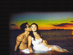 昨日晏紫性感婚照曝光。一向以清纯形象示人的晏紫更是破天荒地穿上一件类似内衣款式的婚纱,带着甜蜜的笑容依偎在赤裸着上身的丈夫胸前,与爱人李圣根在摄影师的镜头前上演了一幕激情接吻。