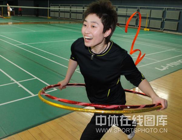 昨天(2日)原本是羽毛球队的公开课,但是刚上到五楼便听见一段火热的音乐。女双组的姑娘们正合着音乐利用绳子、呼啦圈等道具作出各种高难度的动作,站在一旁的教练一边说一边用手或指挥或示范着。向队员打听后才知道,这教练开始来头不小——北京奥运会艺术体操银牌得主隋剑爽。