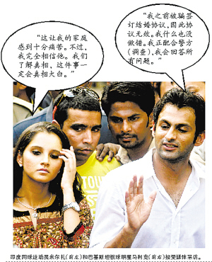 4月5日,印度警方扣押了巴基斯坦板球明星马利克的护照,印度警方称马利克迎娶米尔扎的举动可能犯下了重婚罪。