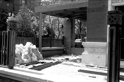 据小区物业的一名负责人介绍,2008年,前乒乓球世界冠军刘伟在该小区尚园×号楼×单元1028室办理入住手续,并开始进行室内装修。今年4月,几名工人来到1028室,开始对外墙进行整修。物业见此这种情况前去询问,得知业主要在紧邻楼层的小花园内搭建一座20多平方米的二层建筑。他们立即和业主进行协商,但没有结果。本月14日,又有一批工人过来,不听劝阻继续施工。