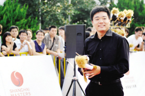当傅家俊坐在主席台上开着发布会,丁俊晖则转战签名台,耐心地与上届大师赛冠军沃顿、希金斯和墨菲一起为上海球迷们签名。作为东道主,小晖当起“志愿者”,碰上一些不认识沃顿的球迷,小晖还会热情介绍。
