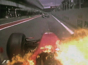 昨天的巴西站出现了种种意外事故而让人难以忘记。其中有迈凯轮车队的科瓦莱宁在维修站火烧莱科宁。