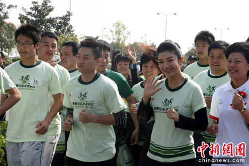 中新网4月21日电 奥运冠军杨威和影视明星黄奕任“爱心大使”,带领过万安徽市民开展健康跑活动,为即将召开的第四届全国体育大会造势。