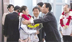 据悉,本月2日,温哥华冬奥会韩国代表团回国之时,韩国文化部长柳仁存亲自到仁川机场迎接。在此期间,KBS一直负责整个过程的录制过程,柳仁存部长被拍到在给金妍儿佩戴花环时,曾试图拥抱金妍儿,但金妍儿显然对这一举动比较介意,有意地向后退缩,但柳部长仍强行两手抱住金妍儿,表情更是有些“猥琐”。