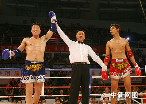 中新网重庆3月21日电 (孟幻)21日晚,中国选手张开印击败来自泰国的威汉,获得在重庆举行的第五届国际武术搏击王争霸赛——“龙虎争霸”暨中泰拳王争霸赛冠军。