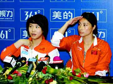 前两天还异常平静的陕西省跳水中心从前天开始就“戒备森严”,为了给郭晶晶营造一个宽松的训练环境,十几名武警严阵以待将记者与跳水中心“隔离”。而到了昨天正式比赛开始,现场的气氛更为“紧张”,郭晶晶所到之处都有若干武警保驾护航,要想接近郭晶晶,那是万万不能的。看到如此情景,当时记者就跟相熟的几位外地的媒体琢磨,一会的新闻发布会一定有“好戏”上演。