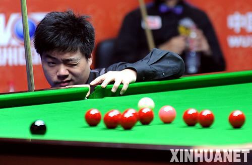 丁俊晖将与艾伦和墨菲之间的胜者争夺冠军。(记者凌军辉)