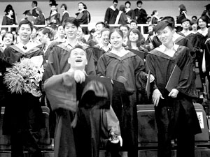 “最近几年,我硕士班毕业推迟,留学放弃,生孩子计划推迟,都是为了2008年奥运会,可惜也没参加上。”回忆起近几年的奋斗史,老张感慨颇多,“不过今天参加毕业典礼还是很幸福,也很满足。”