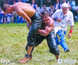 不过,这并不会影响土耳其人参加比赛的热情,如今这项赛事已经成为土耳其人的节日,每年都会有来自全国的1000多名运动员参赛,甚至还包括小孩,比赛的时间也从原来的一天变成了三天,而这还是因为组委会对参赛人数进行了控制。据了解,每年举办这项赛事都得用掉至少两吨的橄榄油,而获胜者的奖励同样价值不菲,这项比赛一共分为5个等级,如果你能够在最高等级的比赛中连续三年夺冠的话,就可以永久保留一条价值达到4万美元的金腰带。快报记者 陶晶