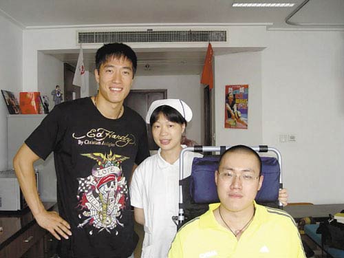 多方打听了解到的情况是,本周四,刘翔穿着黑色T恤,头戴鸭舌帽,悄悄进入医院。因为同是上海运动员,又是老朋友,刘翔和汤淼聊得很开心。刘翔先仔细了解了汤淼的康复情况,鼓励他积极配合医生治疗,以争取好的结果。刘翔此行相当低调,只在病房呆了十分钟就匆匆离去,不过走之前,他还是满足了汤淼的主治医师、护士合影留念的要求。
