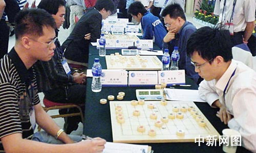 中国全国“四冠王”赵国荣今日先胜德国棋手薛忠,次轮大战“香港棋王”赵汝权。赵国荣执红,双方以左仙人指路对卒底炮、红还右中炮黑摆顺炮布阵。第18至20回合时,黑方战略失策,放弃五路中炮,车费三手棋吃红九路边炮,将车位打暗。最终第53手,红马七退六伏杀,赵汝权见无法续弈爽快认负,赵国荣今日取得二连胜。