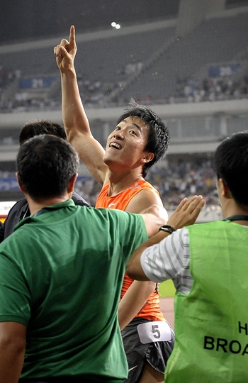 刘翔认为自己“一上场就收不住”:“今天感觉很奇怪,这么多热烈(助威)的观众,我想好好拼一把。”赛前,教练孙海平要求刘翔收住,别受伤。赛后,刘翔表示感觉良好:“我脚还好,很高兴,希望接近以前的水平。”