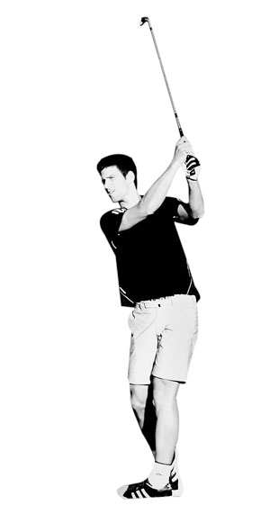 刚刚看过“老虎”伍兹挥杆英姿的照片,小德马上就现学现卖了起来,小碎步地准备,适应性地挥杆,开始击球,居然没打到。