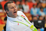 21日晚,中国男篮以76:66战胜韩国,比赛中主帅邓华德在场边激情执教。