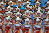 一群武术小羊亮相广州国际体育演艺中心,为亚运男篮比赛中韩之战暖场。