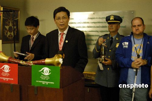 据记者在现场采访中国特奥会副主席、上海特奥会主席施德容博士了解到,中国今年将举办具有世界影响力的三大赛事,除二00八北京夏季奥运会之外,还将举办特奥会和残奥会。国际特奥会是为弱智儿童和成年人提供体育锻炼和比赛机会的国际体育组织,现有一百六十多个会员国家和地区。第十二届世界夏季特奥运动会将于今年十月二日至十一日在中国上海举行,世界上一百六十三个国家和地区的万余名运动员、教练员以及来自世界各国的特奥运动员亲属、媒体记者将抵达中国上海参会。