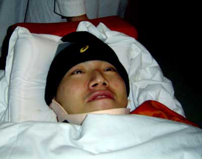 今年6月份在俄罗斯热身活动时颈椎受重创的汤淼此前一直在上海进行治疗,他前天晚上来到北京康复中心进行治疗。这也是汤淼重伤之后第一次在公众面前亮相,目前他神志清醒,头部能够轻微摇动,但胸部以下仍无知觉,双手无法用力。