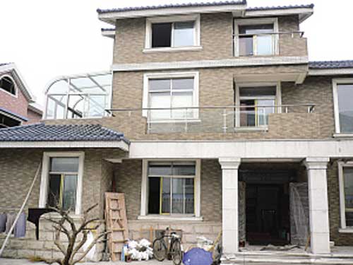 早就听说丁俊晖家的豪宅要装防弹玻璃,赶到现场记者第一时间找到了客厅的那扇大窗。据说,图纸上原先预留的窗户位置更大,全是落地窗,但考虑到安全因素,丁家还是决定把窗的位置往上抬了一点,但已非常可观。记者走进大窗仔细观察了一番,玻璃确实很厚,“不是防弹的,因为窗子大,所以玻璃要厚一点,当时是开玩笑说玻璃要厚到防弹才行,”照看屋子的沈大妈笑眯眯地告诉记者。