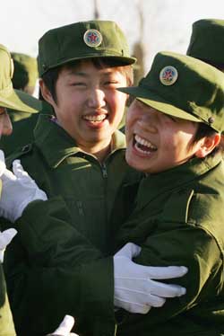 不过在接下来的场外表演中,郭跃表现出色,被评为“训练标兵”,“这次军训在思想意志上有了一个很大提升,刚开始时还觉得比训练都累,但军训结束了感觉很充实。”郭跃深有感触地对记者说。(实习生 王玮译)